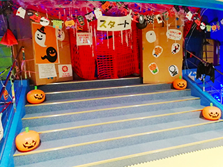 お菓子の引換場所は、海洋文化館1階の多目的ホール(期間中はハロウィンめいろ開催)です。