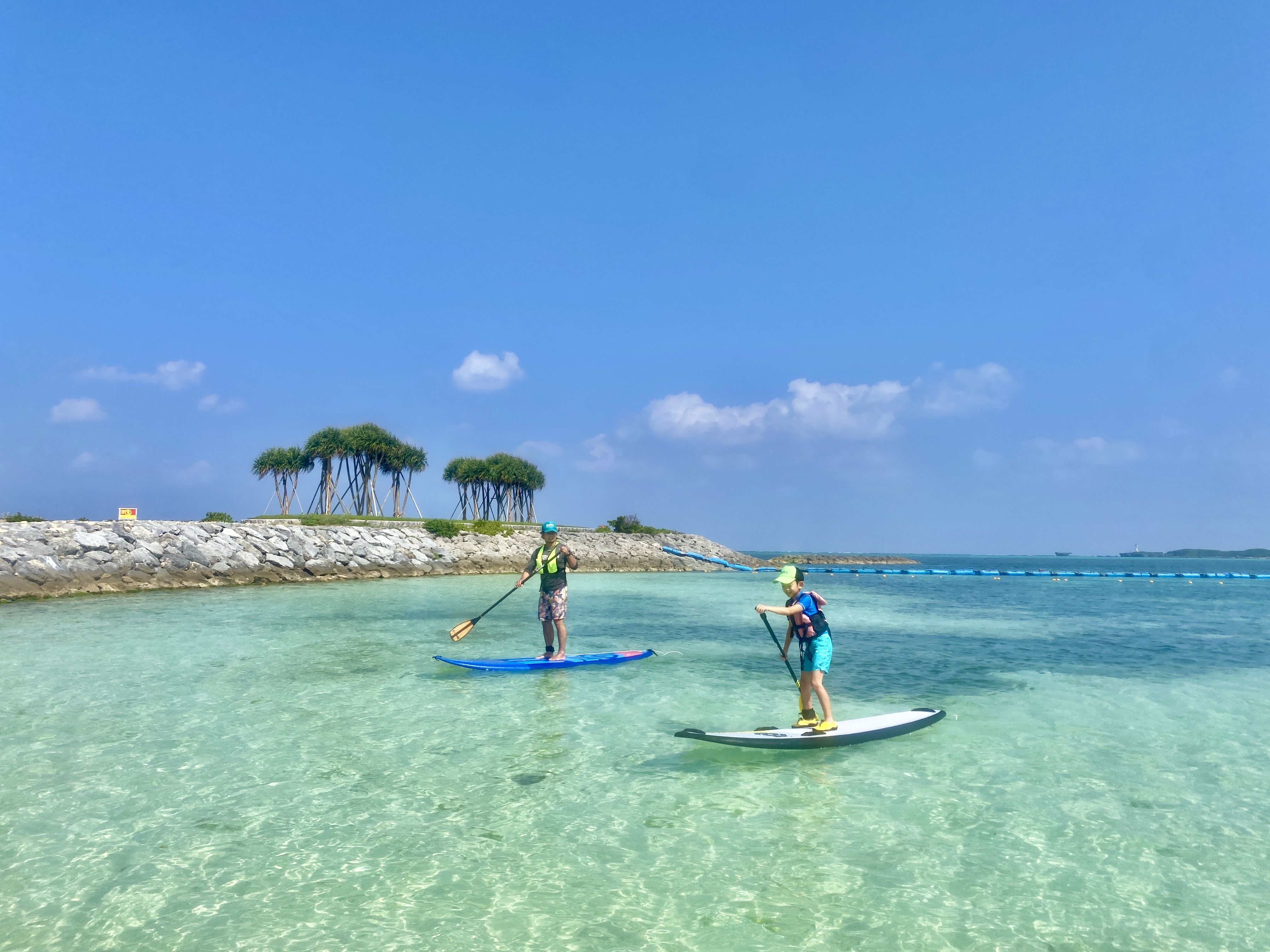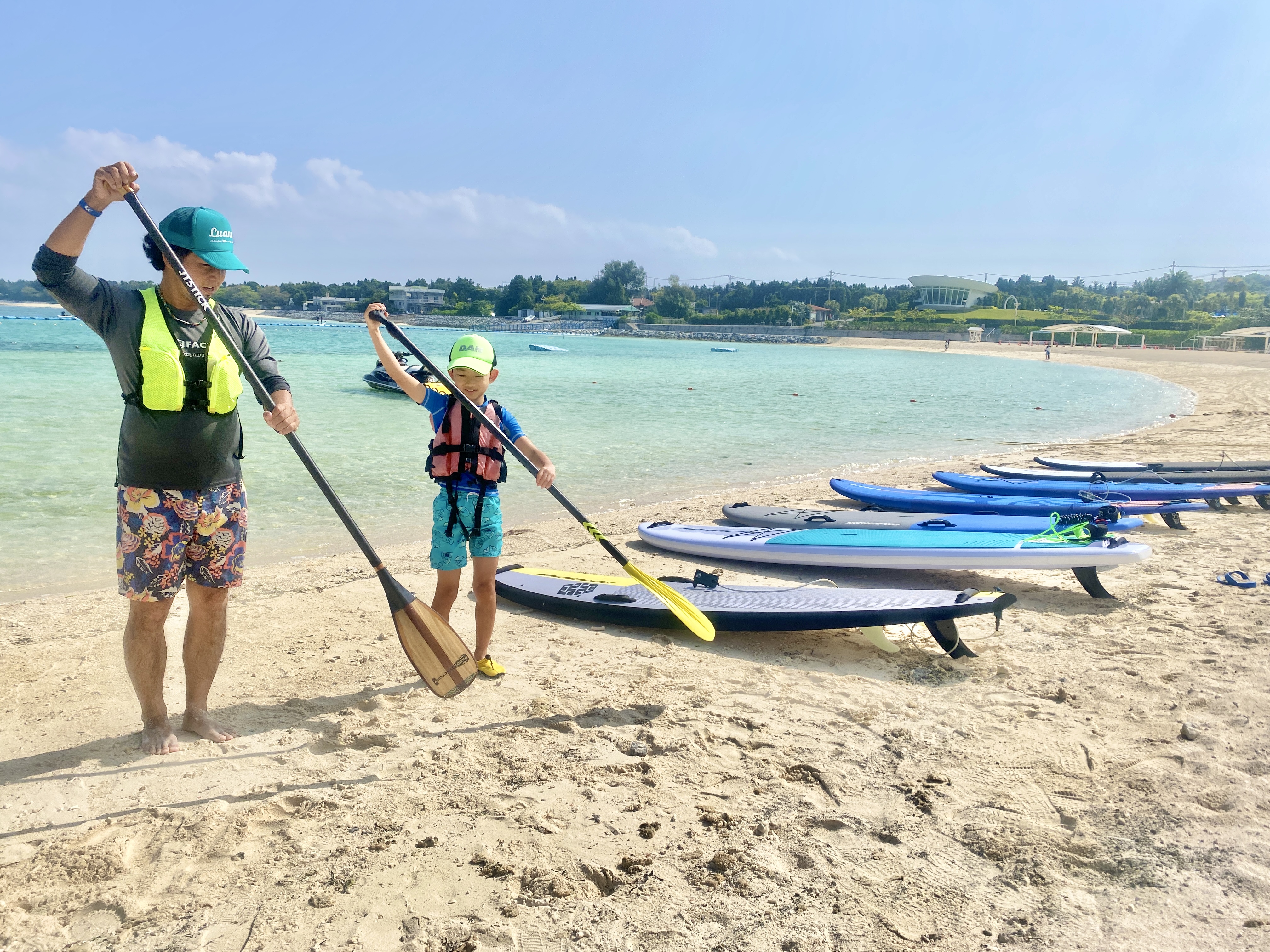 素敵なビーチでSUPを楽しもう☆ボードの上に立ち、パドルを使って海の上をスイスイ漕いで進みます。専門のインストラクターが教えてくれるので、初心者でも気軽に楽しめます。また、日本SUP指導者協会4級バッジテストを取得できる講習も開催!