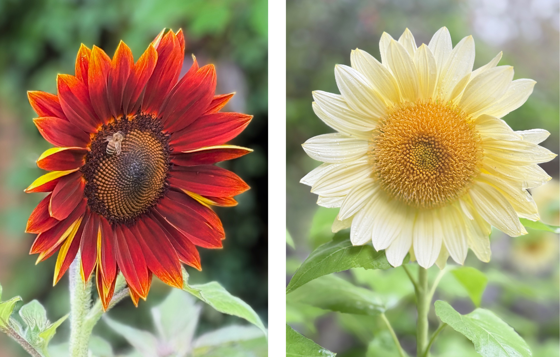 今はチョコレートやホワイトといった、変わった色合いのひまわりも見ごろです。