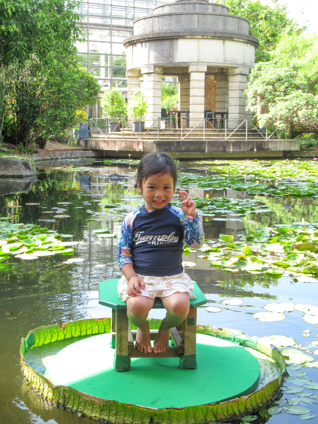 南米原産の大きなハスの葉に乗って浮かんでみよう!