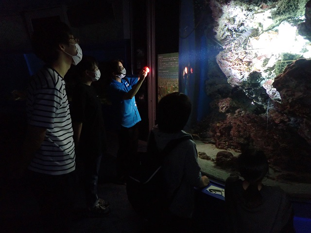 昼間とは異なる雰囲気の館内で、静かに揺れる光と夜の生き物たちをお楽しみ下さい。