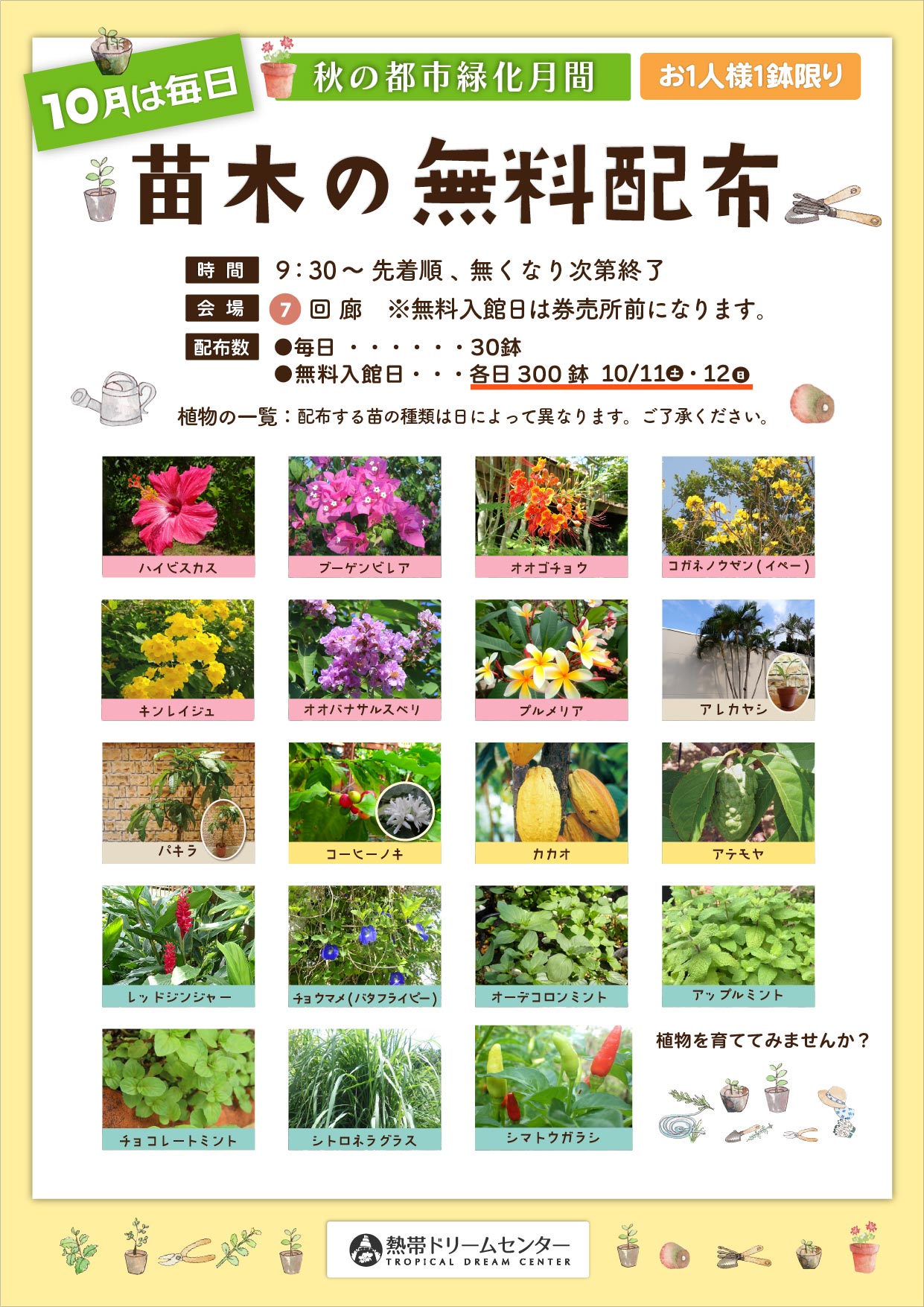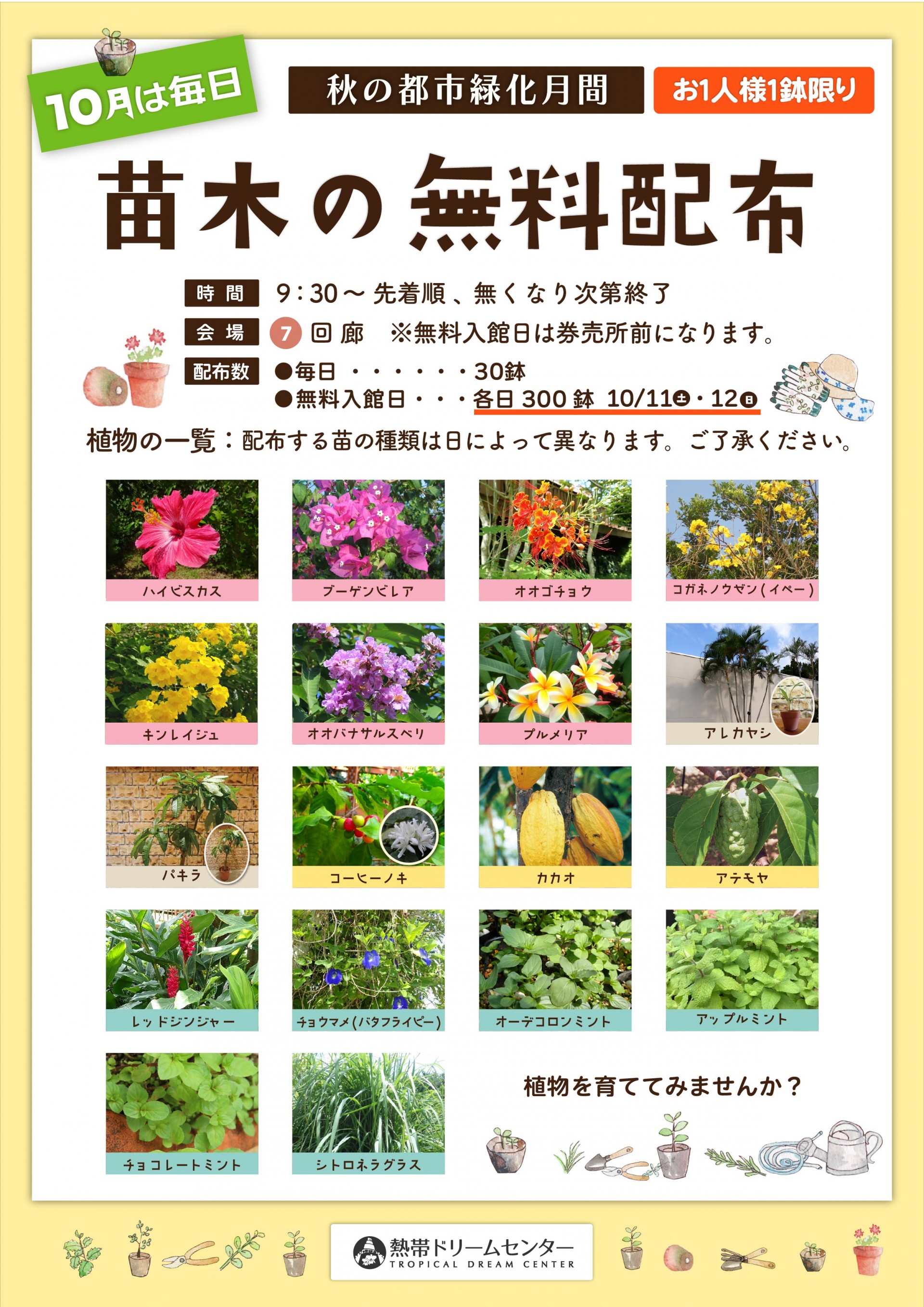 海洋博公園 熱帯ドリームセンターでは、秋の都市緑化推進運動にあわせ、沖縄で生育する植物の苗木配布を行います!