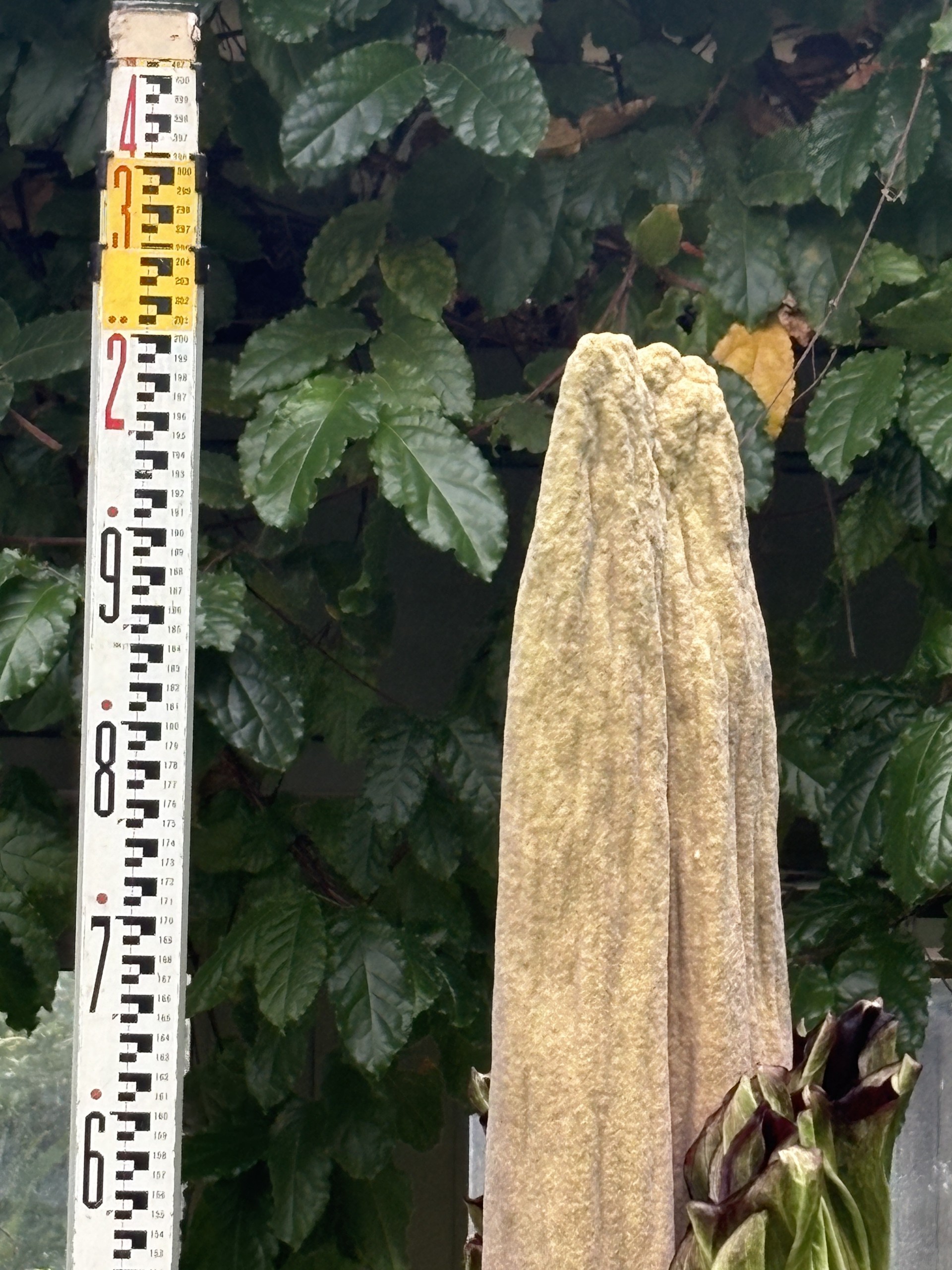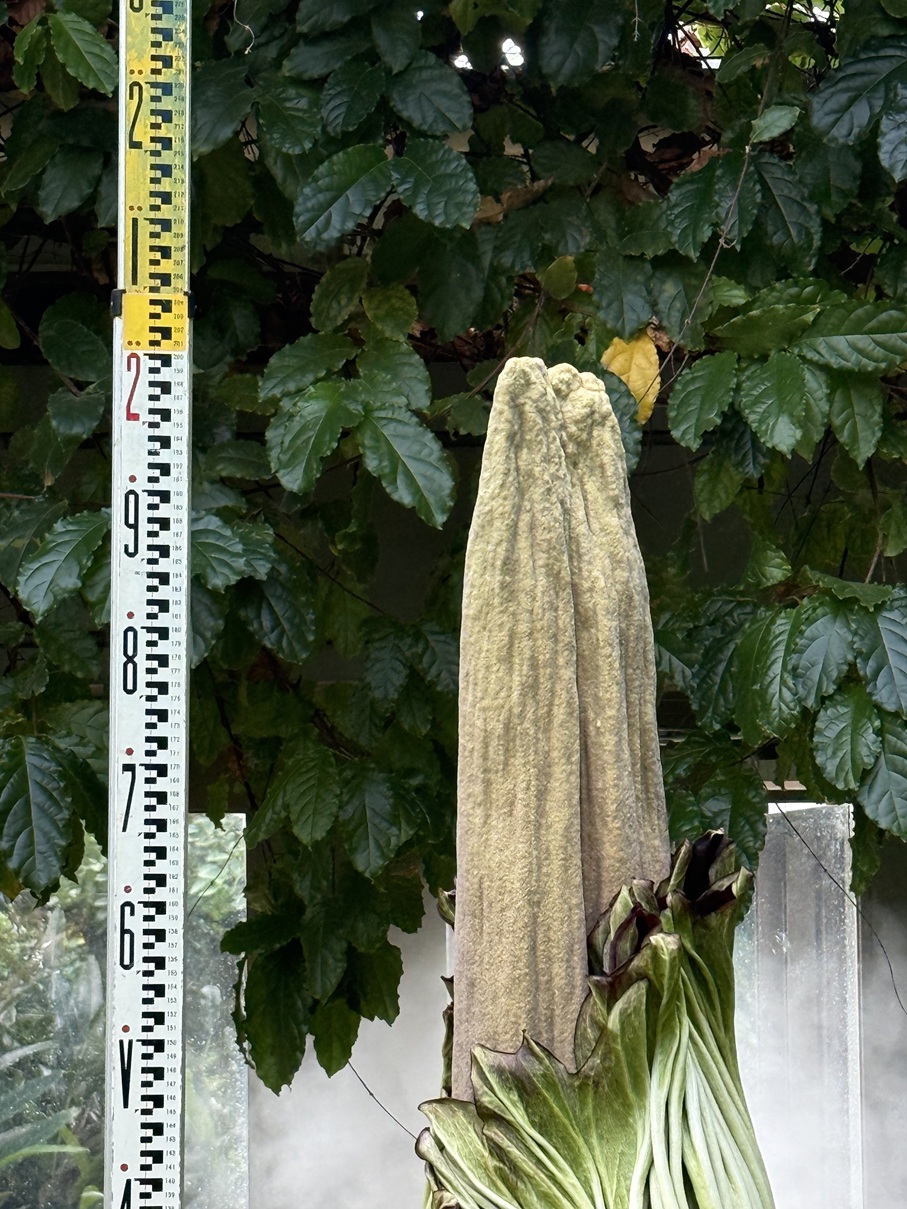 高さが1mを超えました。てっぺんから肉穂花序(にくすいかじょ)の先端が見えてきました。