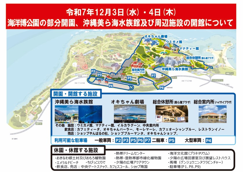 令和7年12月3日(水)・4日(木)海洋博公園の部分開園・沖縄美ら海水族館及び周辺施設の開館について