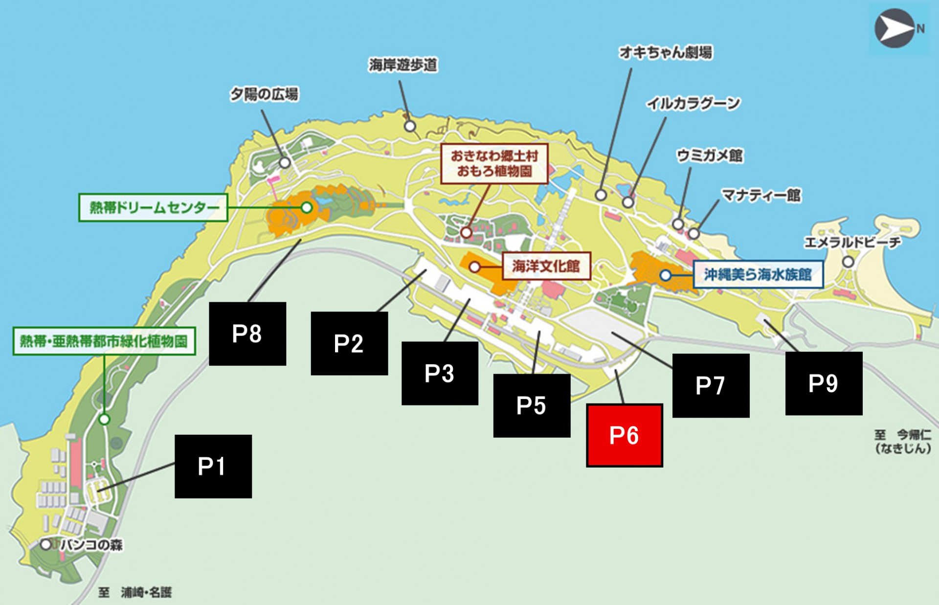 海洋博公園 P6北ゲート前駐車場は草刈り作業のため下記日程は駐車できません。