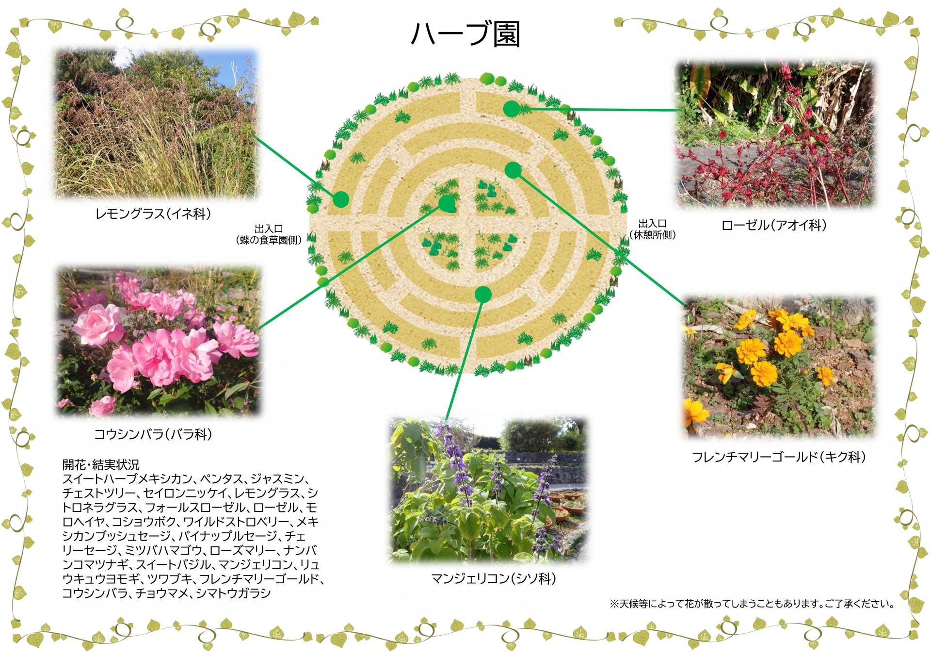 花と緑に囲まれた「熱帯・亜熱帯都市緑化植物園」は身近に植物を感じて学びながら遊べるエリアです。