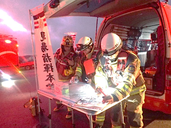 消防合同火災防御訓練            事前合同シミュレーション風景