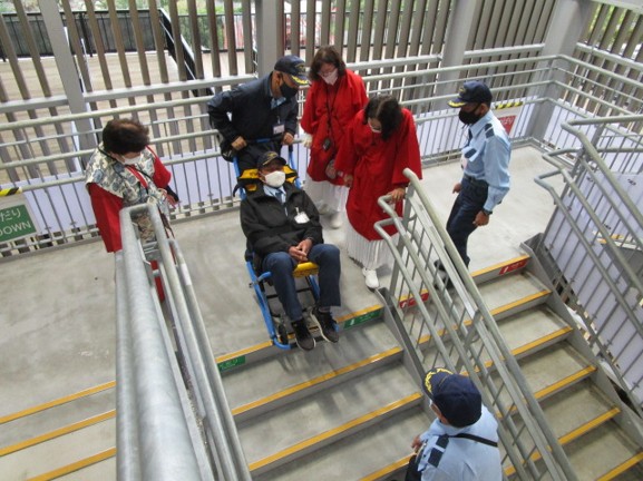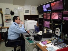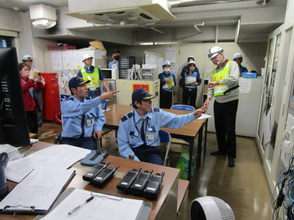 階段避難車を使用した搬送訓練     警備室による24時間監視体制