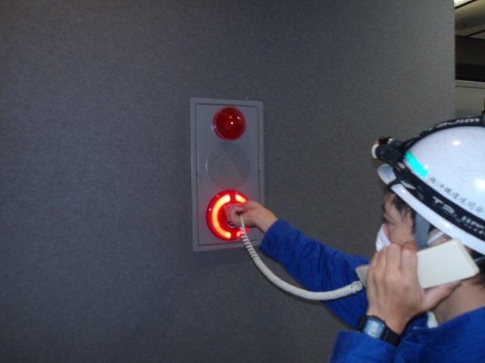 訓練終了後の振り返り                 消防設備点検(発信機能確認)
