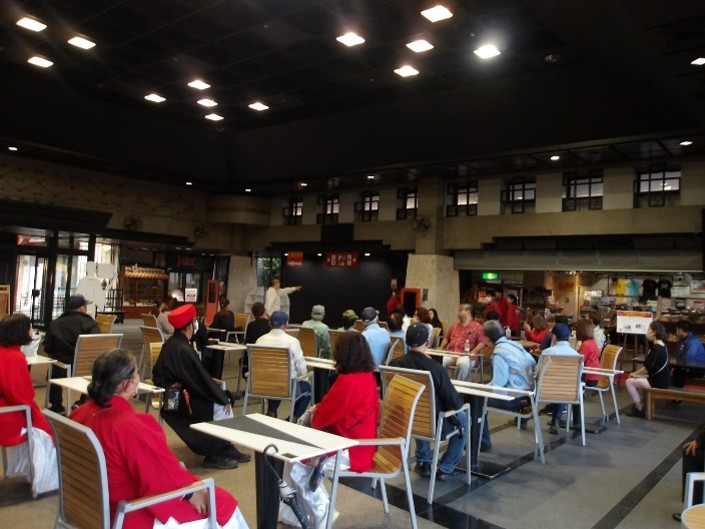 多言語ボードを活用した避難誘導訓練   ファシリテータを配置した訓練風景