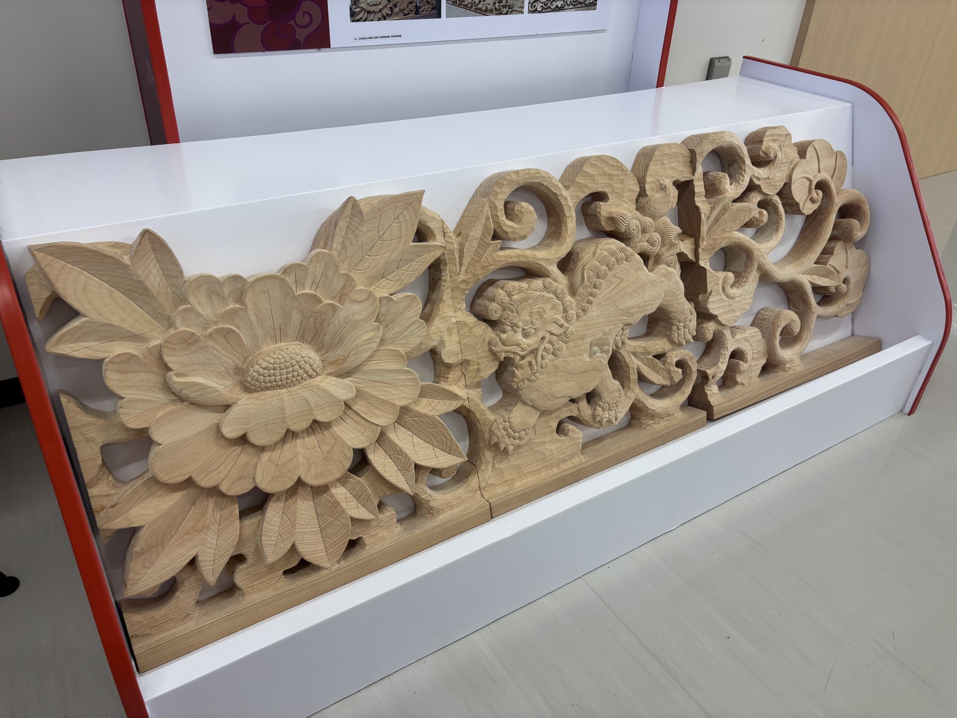 今回は、「1日社会体験」として首里城公園の広報・企画・展示係部署でお世話になっています。本日は、解説員の方々や部署の皆さんから首里城やその復興について多くのことを学ばせていただきました。その中から、「復興の技術」について知る事ができるエリアをご紹介します。