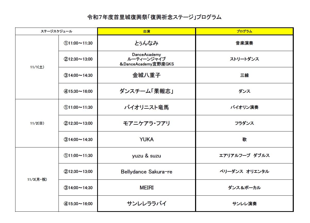 TEL:098-886-2279(首里城復興祭実行委員会 事務局)10:00~17:00