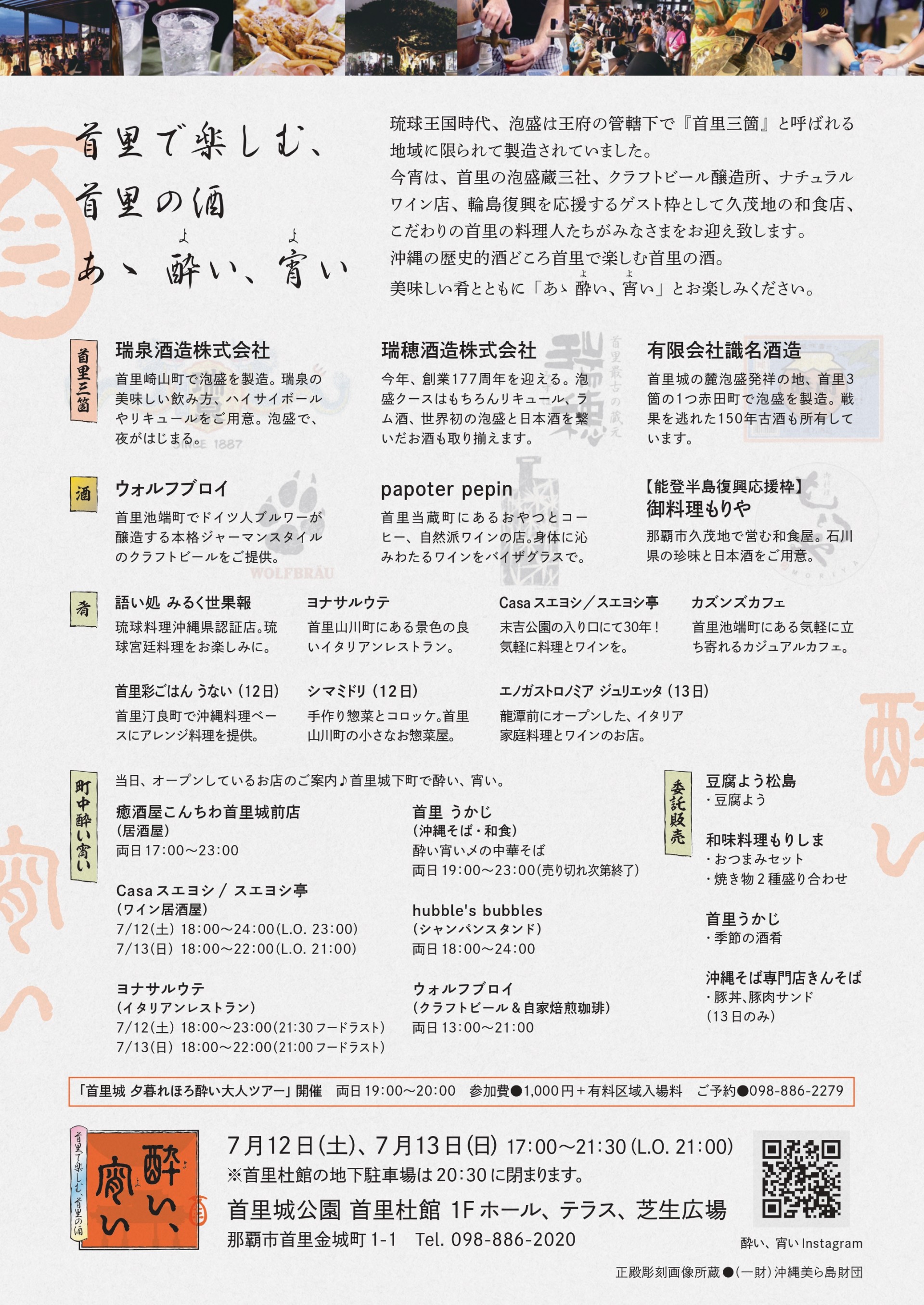 首里で楽しむ、首里の酒『酔い、宵い』イベントチラシはこちらです
