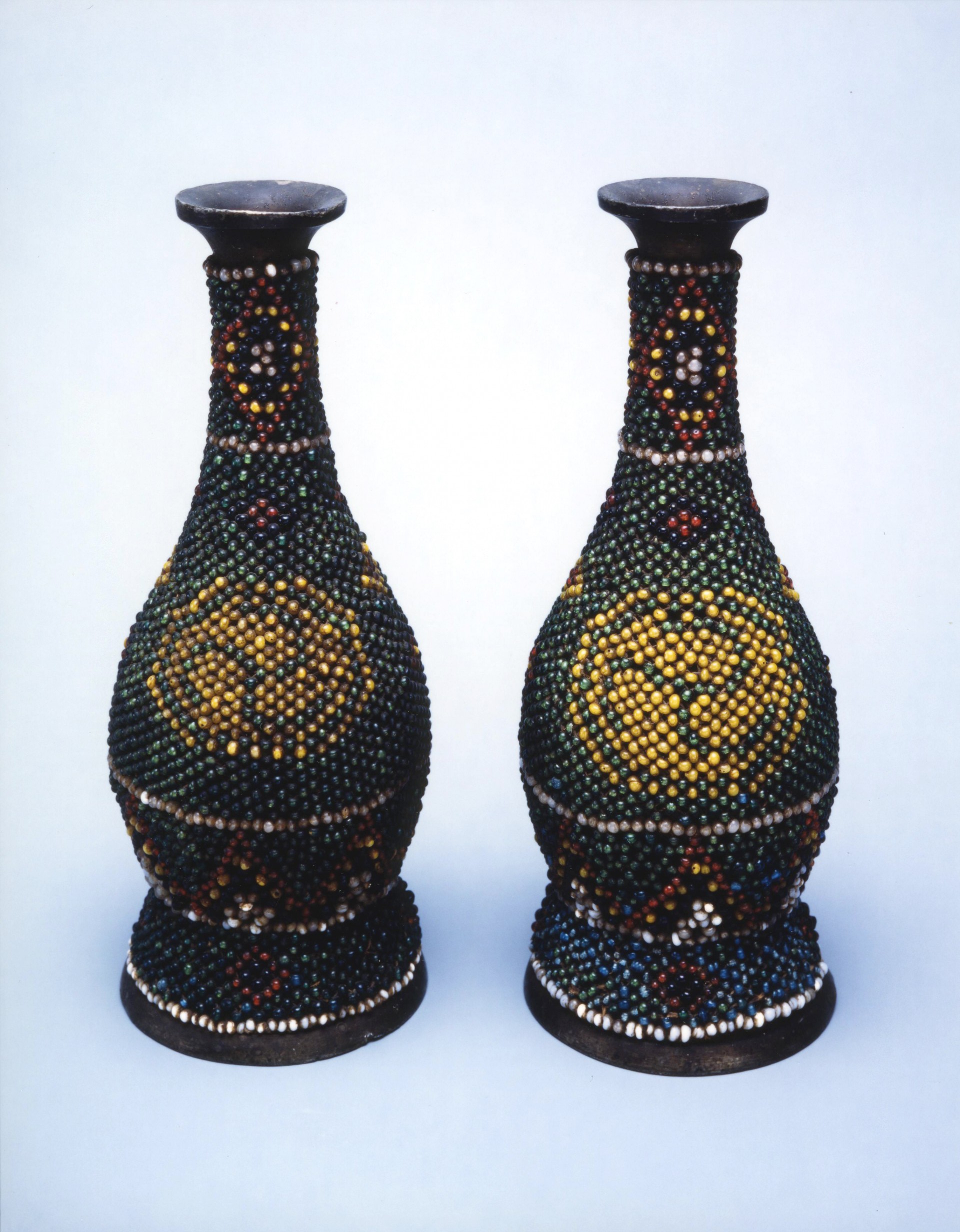 王府や御殿(うどぅん)での祭事などに酒器として用いられた道具。模様に尚家(しょうけ)の紋章である三巴紋(みつともえもん)を使用している。錫製徳利(すずせいとっくり)の表面をガラス玉で編んだものをかぶせている。御玉貫(うたますき)は、本資料以外には国王の末裔である尚家、伊是名島の銘苅家(めかるけ)・名嘉家(なかけ)、沖縄県立博物館・美術館、浦添市美術館などに現存している。現存資料がわずかしかない貴重な琉球の祭祀道具である。