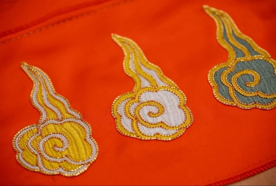 ※垂飾に刺繍される吉祥模様のひとつ、瑞雲文(ずいうんもん)