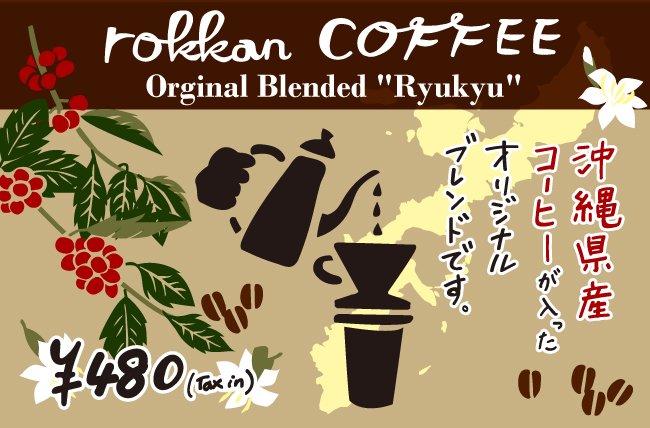 首里龍潭通りにあるコーヒー専門店「rokkan COFFEE SHURI」オリジナルの「BLEND "Ryukyu"」を取り扱っています。沖縄県産のコーヒー豆を一部使ったこだわりのブレンド。