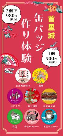 人気の御城印(守礼門デザイン)やクリア御城印、首里城オリジナルおみくじの販売のほか手作り缶バッジ体験も行っています。