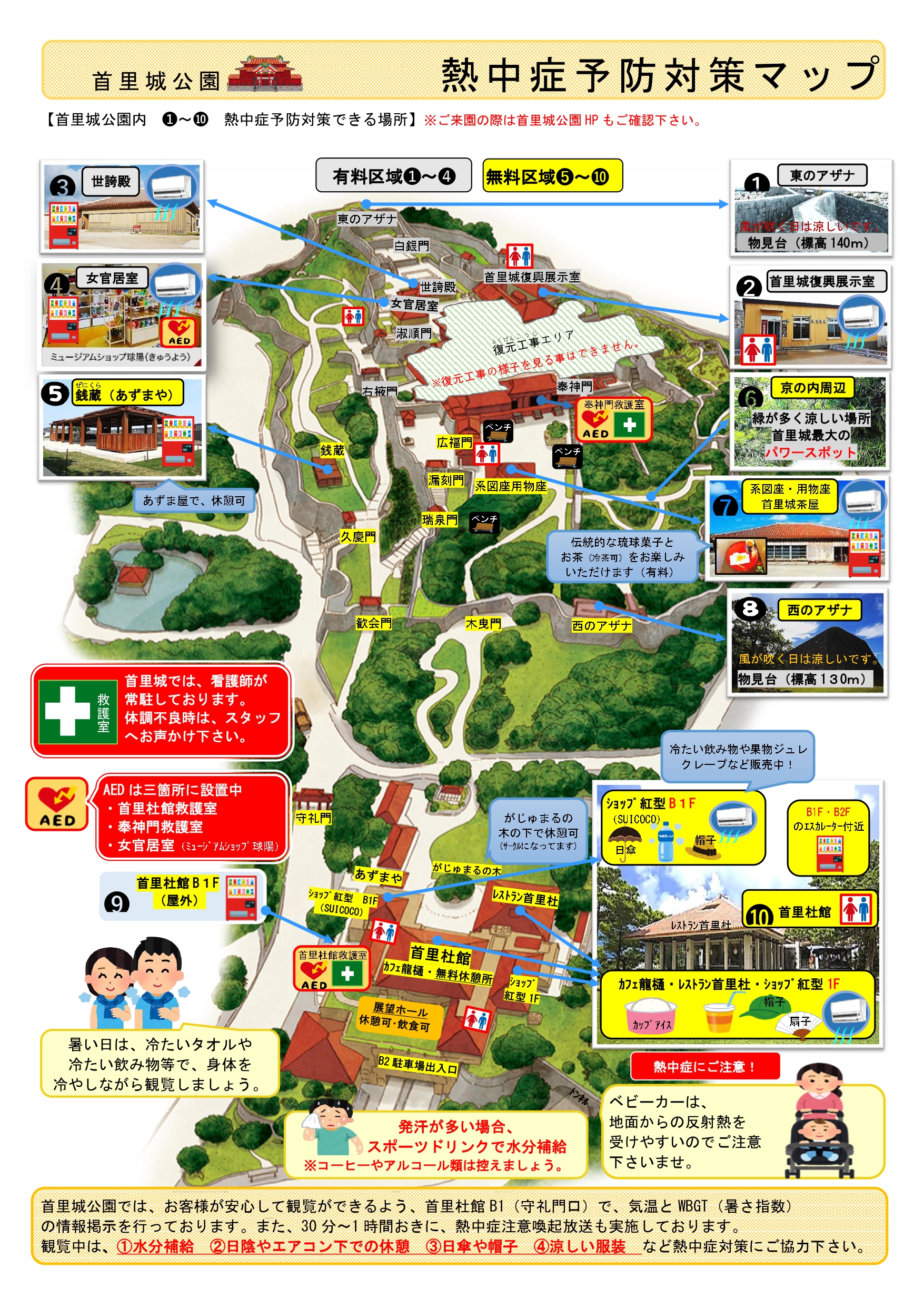・無料区域:カフェ龍樋、レストラン首里杜、首里杜館B1F(屋外)/B1F・B2F(エスカレータ付近)、首里城茶屋、銭蔵、龍潭