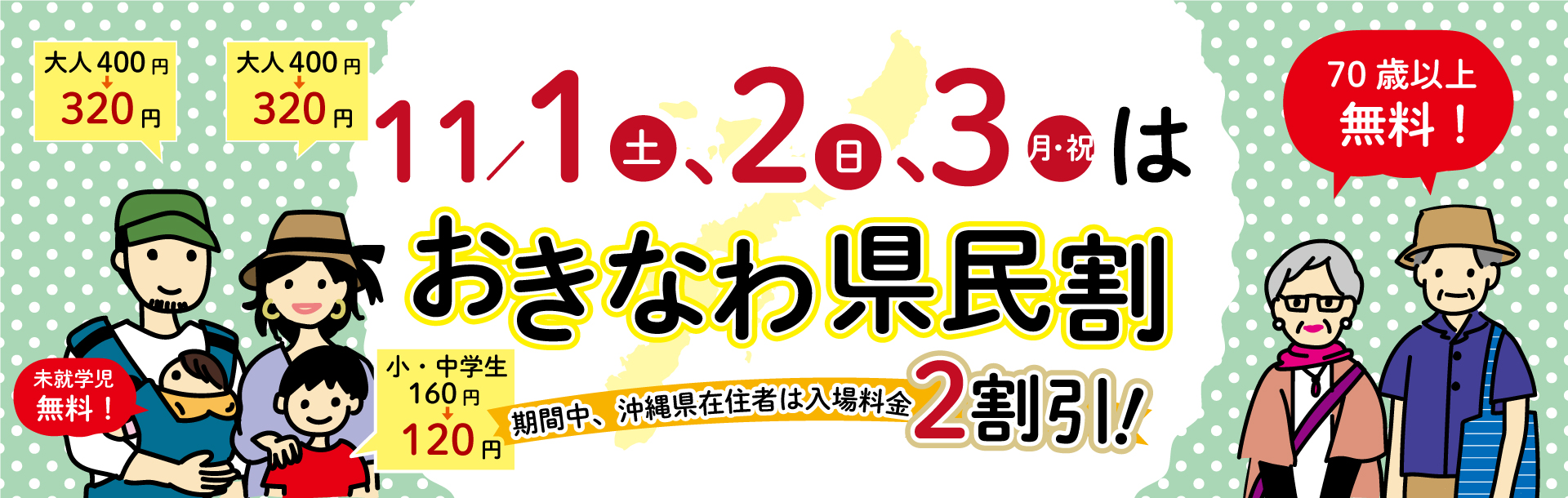 ※6歳未満の未就学児および70歳以上の沖縄県民の方は、いつでも入場無料です。