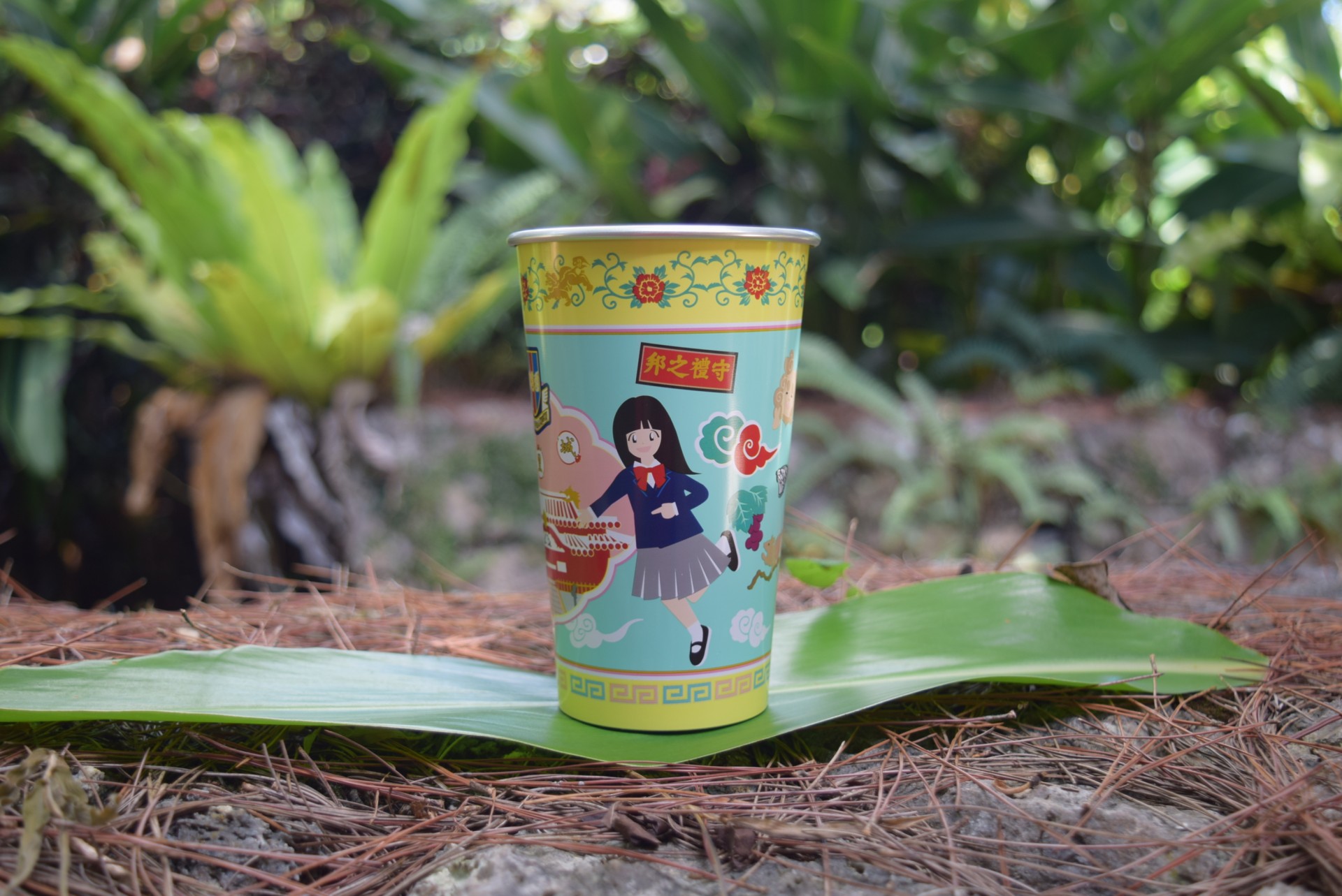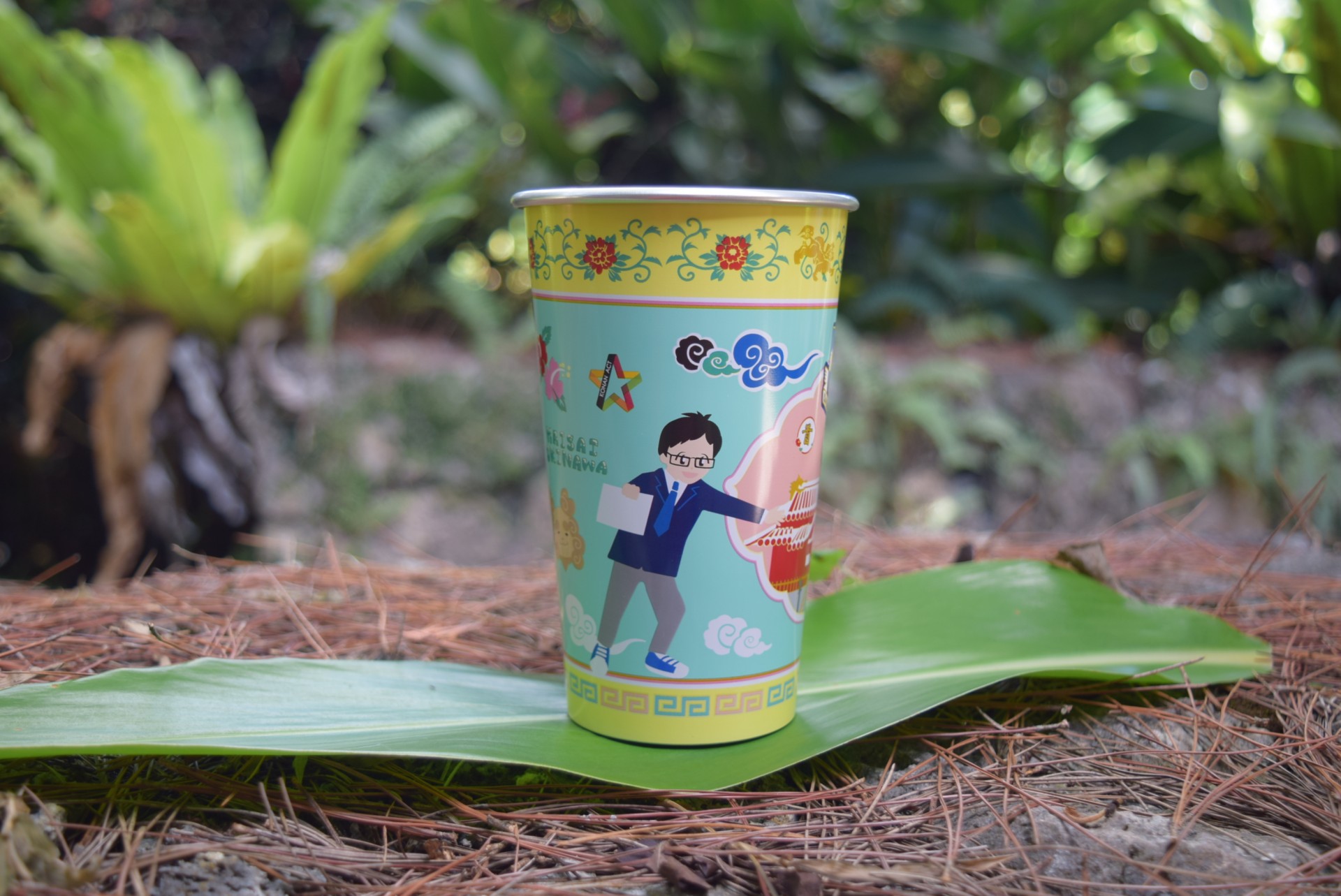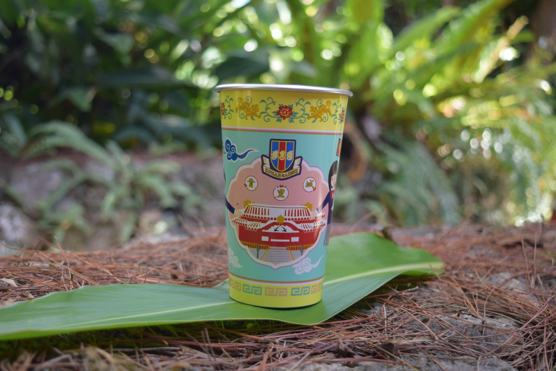 首里城正殿の羽目板にある「葡萄と栗鼠」は豊かさと子孫繁栄の象徴とされており、今回「ぶどうの実の間で遊ぶリス」をアルミカップに表現しました。